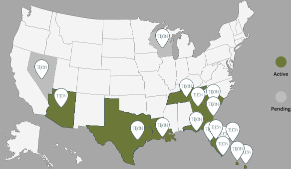 In order to set our franchisees up for success, our team conducts thorough market research and analysis to discover the current, hottest marketable locations throughout the country. The below lists some of the current markets that our team is pursuing as potential franchise locations for Tijon.